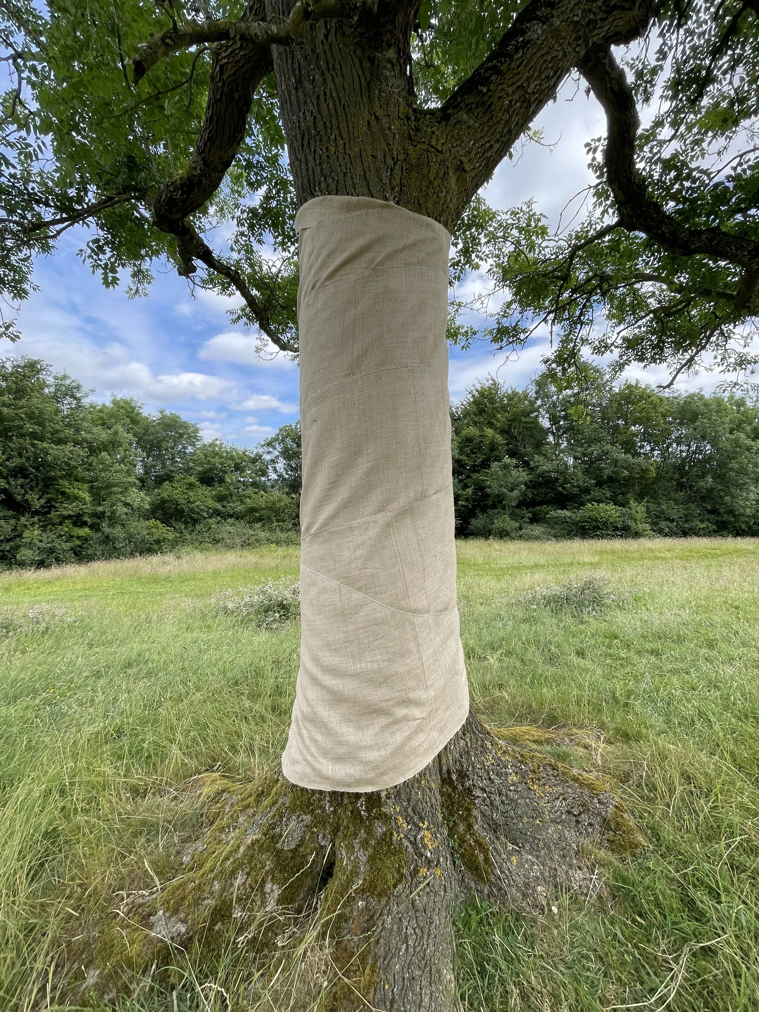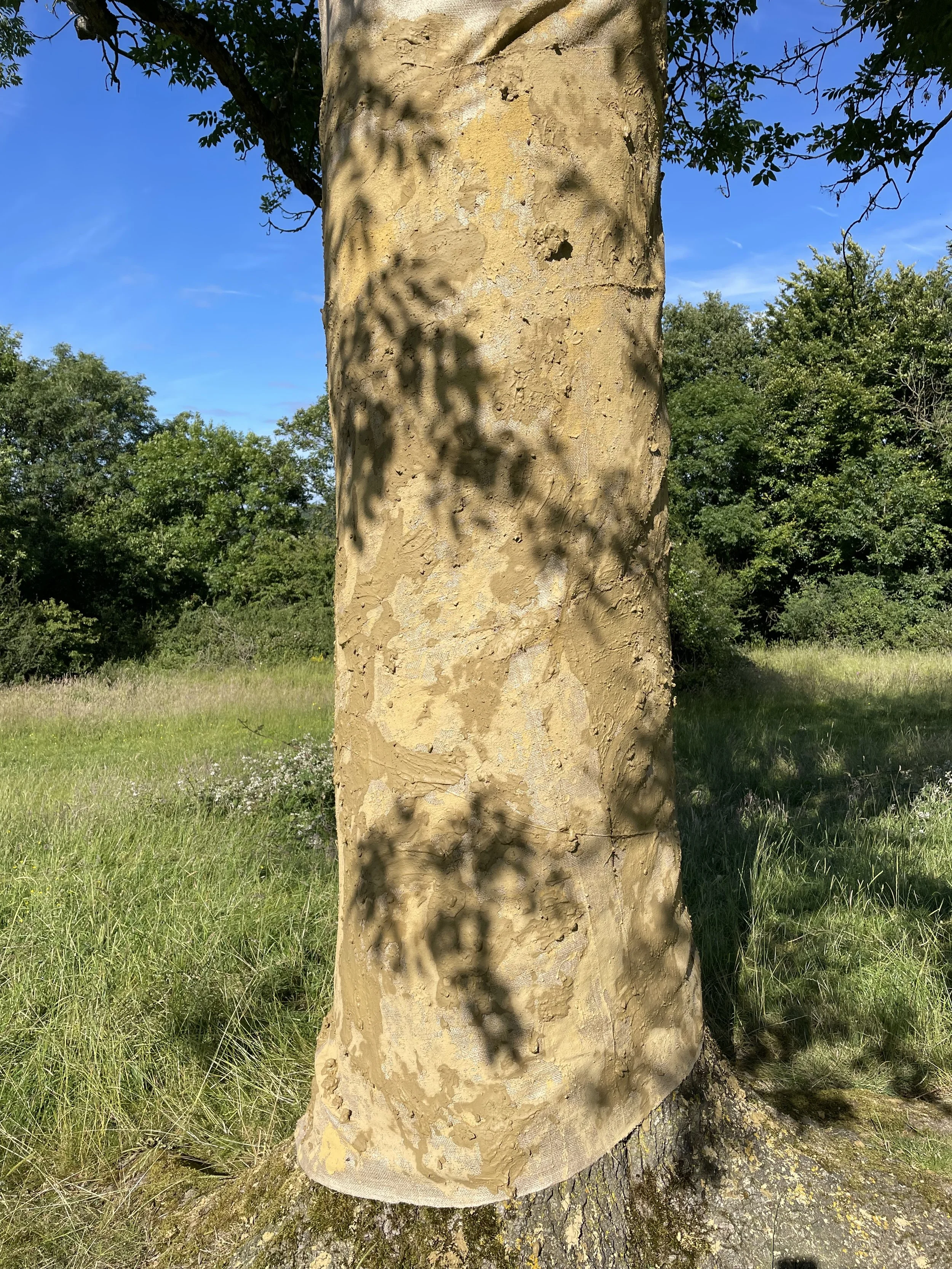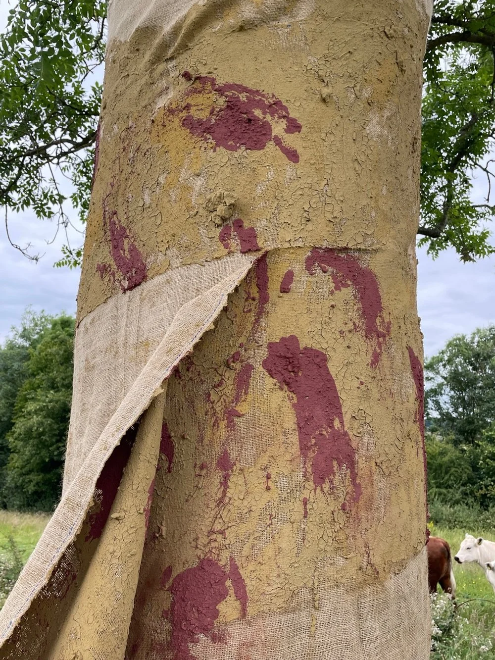 Ash tree daubed with red, the colour of the mark used for Foresters when a tree needs to be cut down.